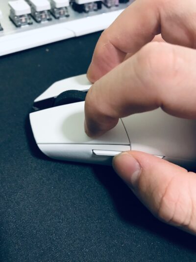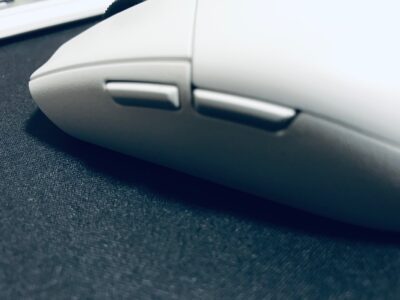 サイドボタンは2個ついているがクリック感があまり良くなく奥のボタンは親指で押しやすいが手前のボタンが少し押しにくい印象。