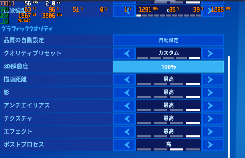 最高設定の場合を比較するために一旦最高にできるところはすべて最高設定にしてみました。