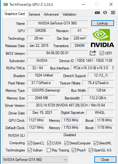 GTX960は2015年ごろに販売された当時ミドルレンジクラスのグラフィックボードになります。