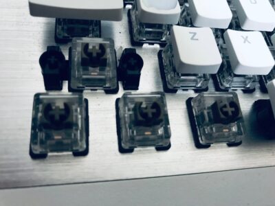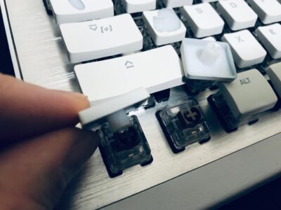 変えのキャップも販売されていないため、このまま使用するか、ロープロファイルではなくなってしまいますが別のキーキャップへ交換するかになります。